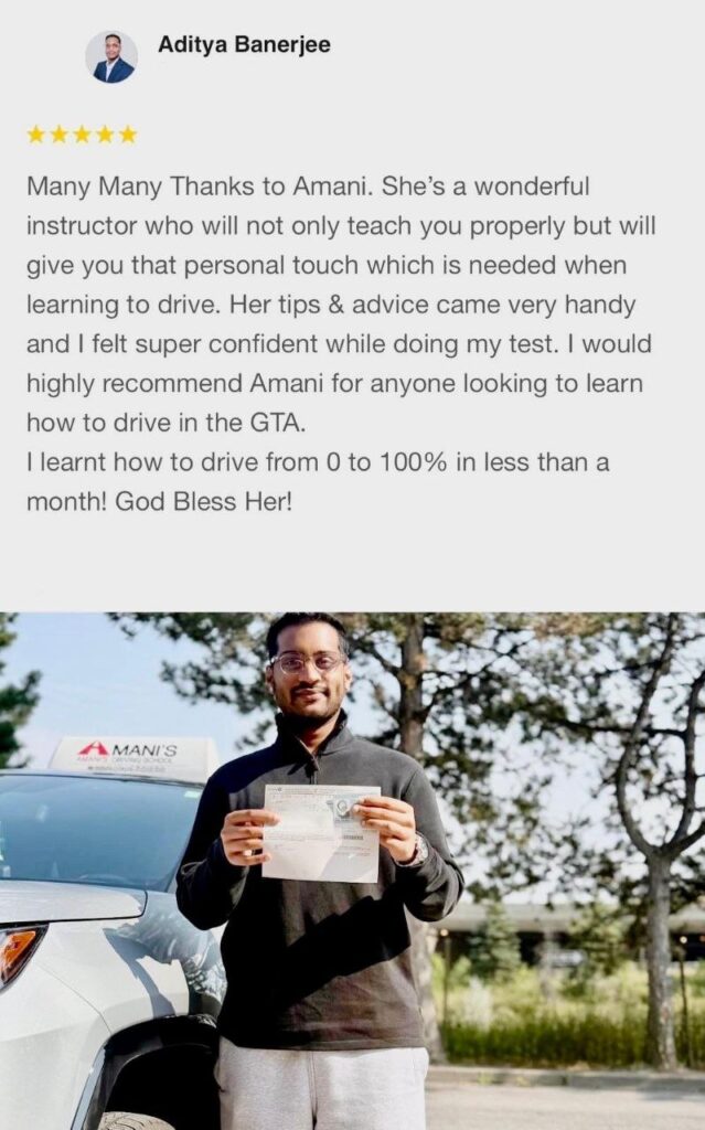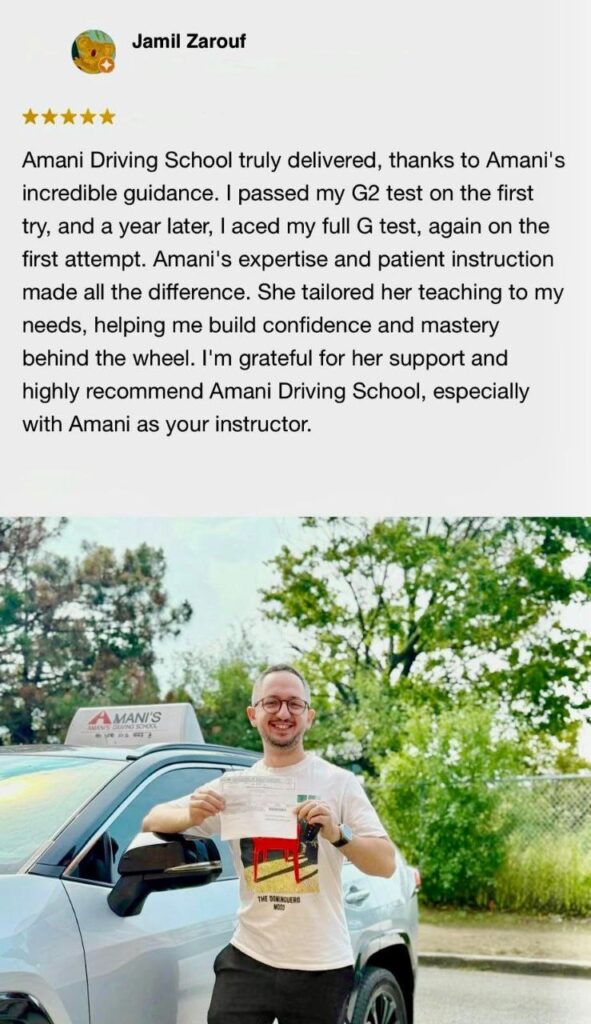 Amani’s Driving School is proud to be among Toronto’s top-rated driving schools—